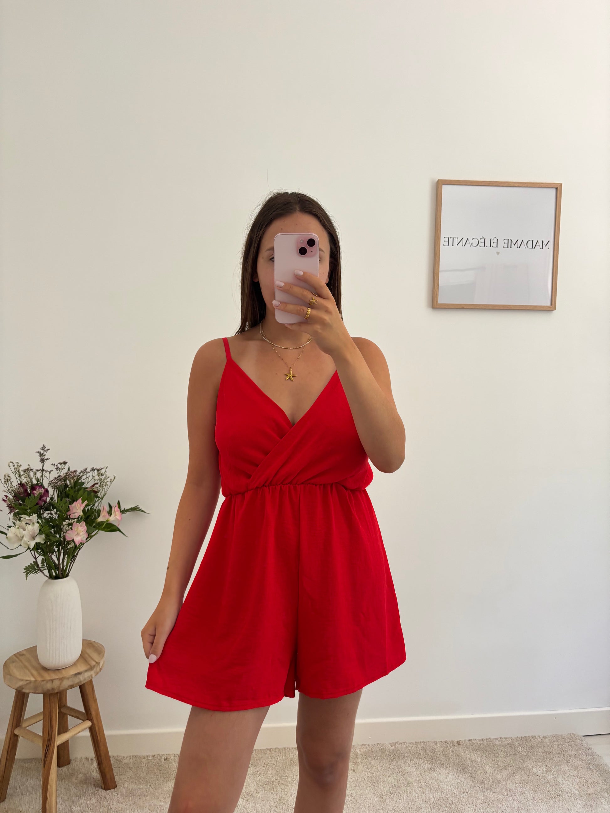 La pièce parfaite pour les journées ensoleillées. Fluide, légère et agréable à porter, cette combi-short te suit partout avec confort. Son tomber naturel donne un effet chic sans effort. À enfiler en un clin d'œil pour un look frais et stylé !
