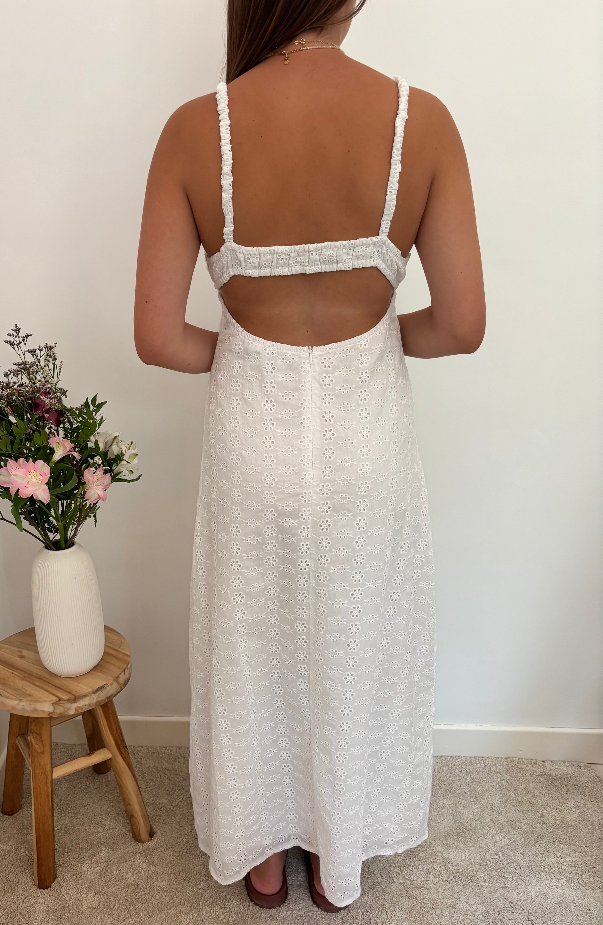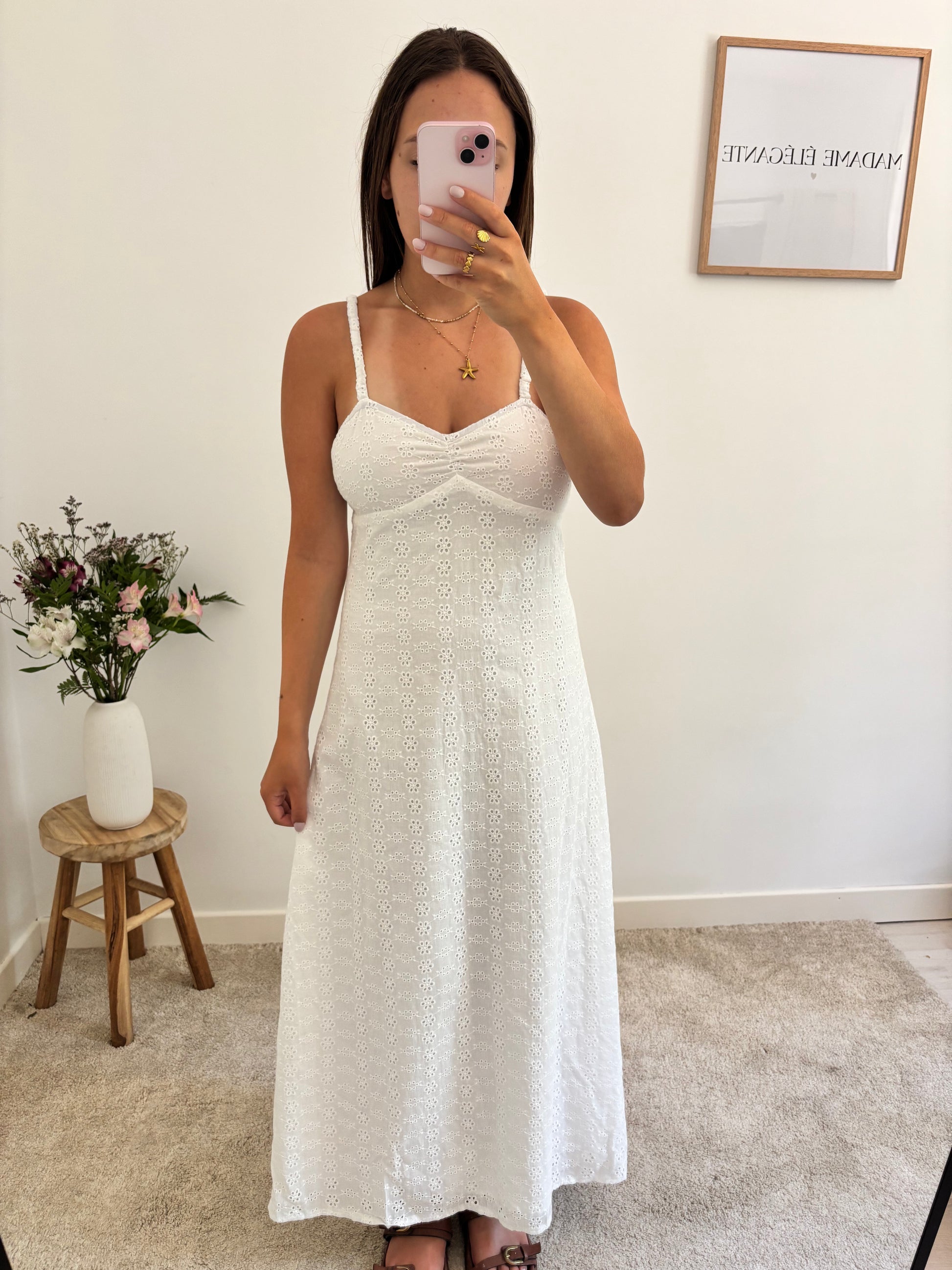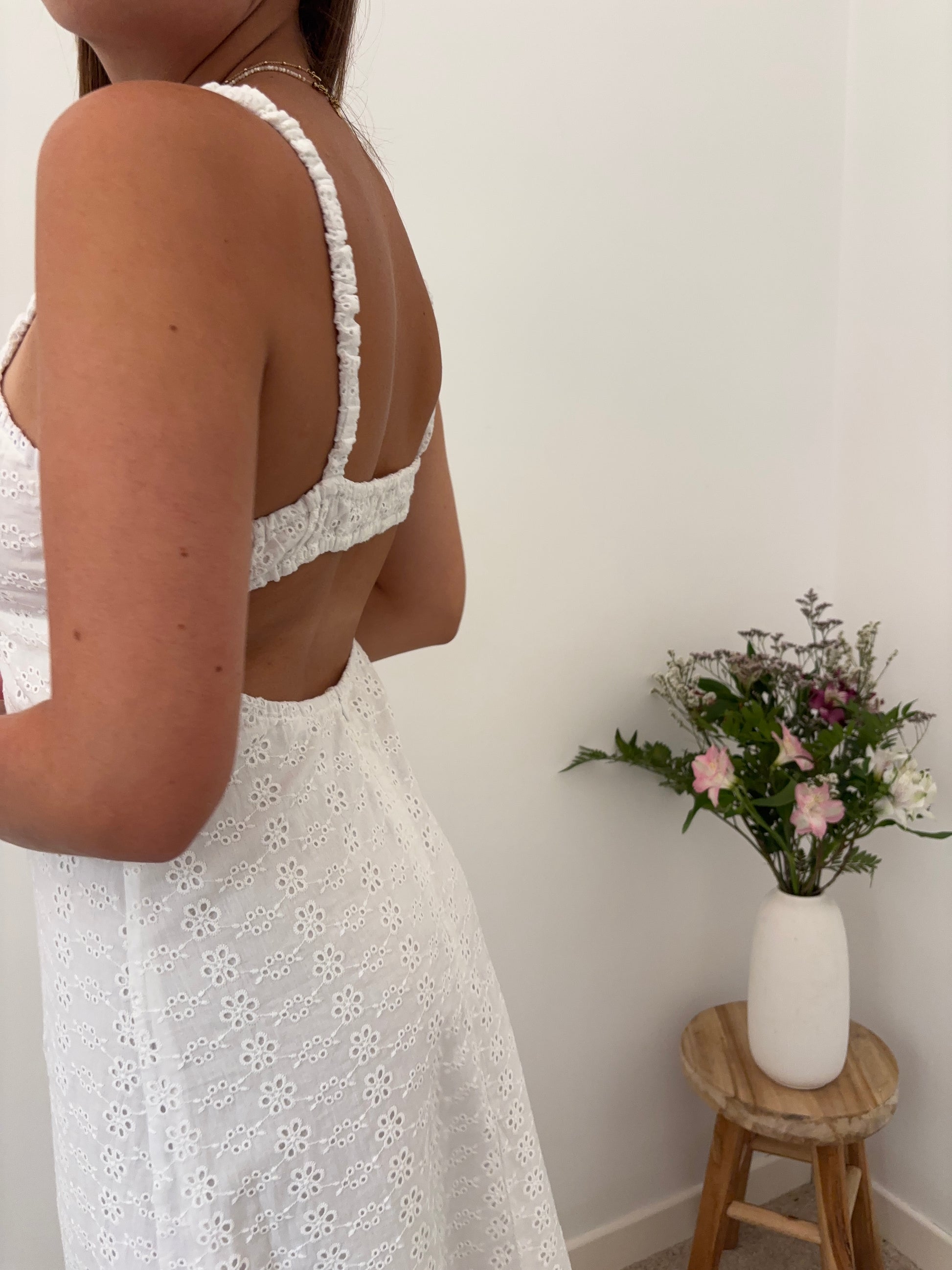 La robe parfaite pour l'été ! Avec sa broderie anglaise délicate et son dos nu ultra féminin, elle fait rimer élégance et légèreté. À porter avec des sandales pour un look bohème ou des talons pour une occasion spéciale.