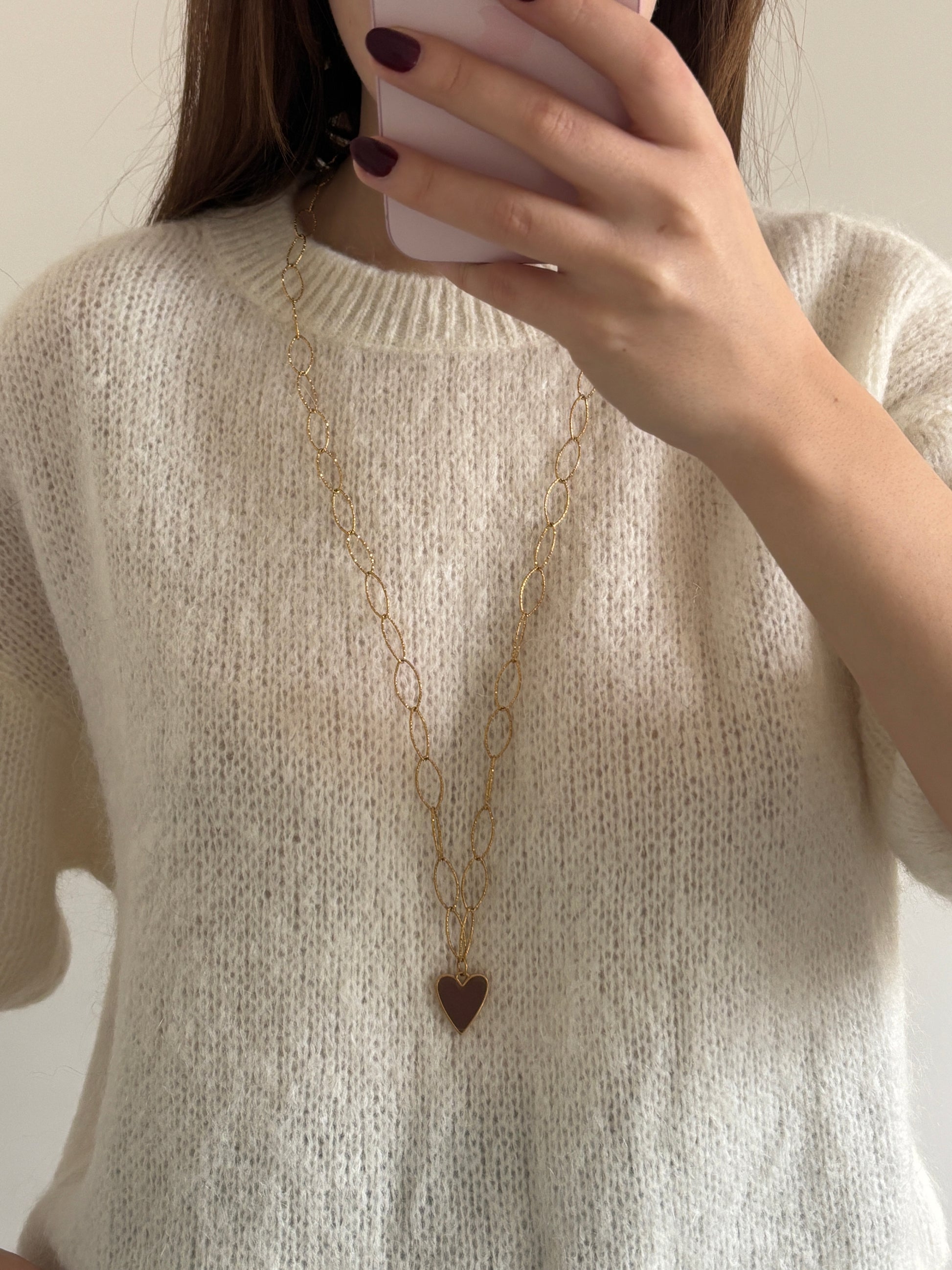Sautoir coeur marron