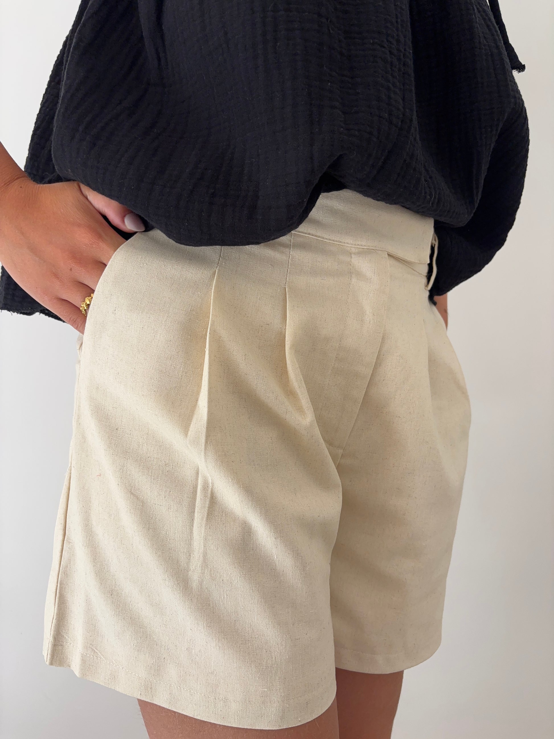 - Short à pinces avec poches à l'avant