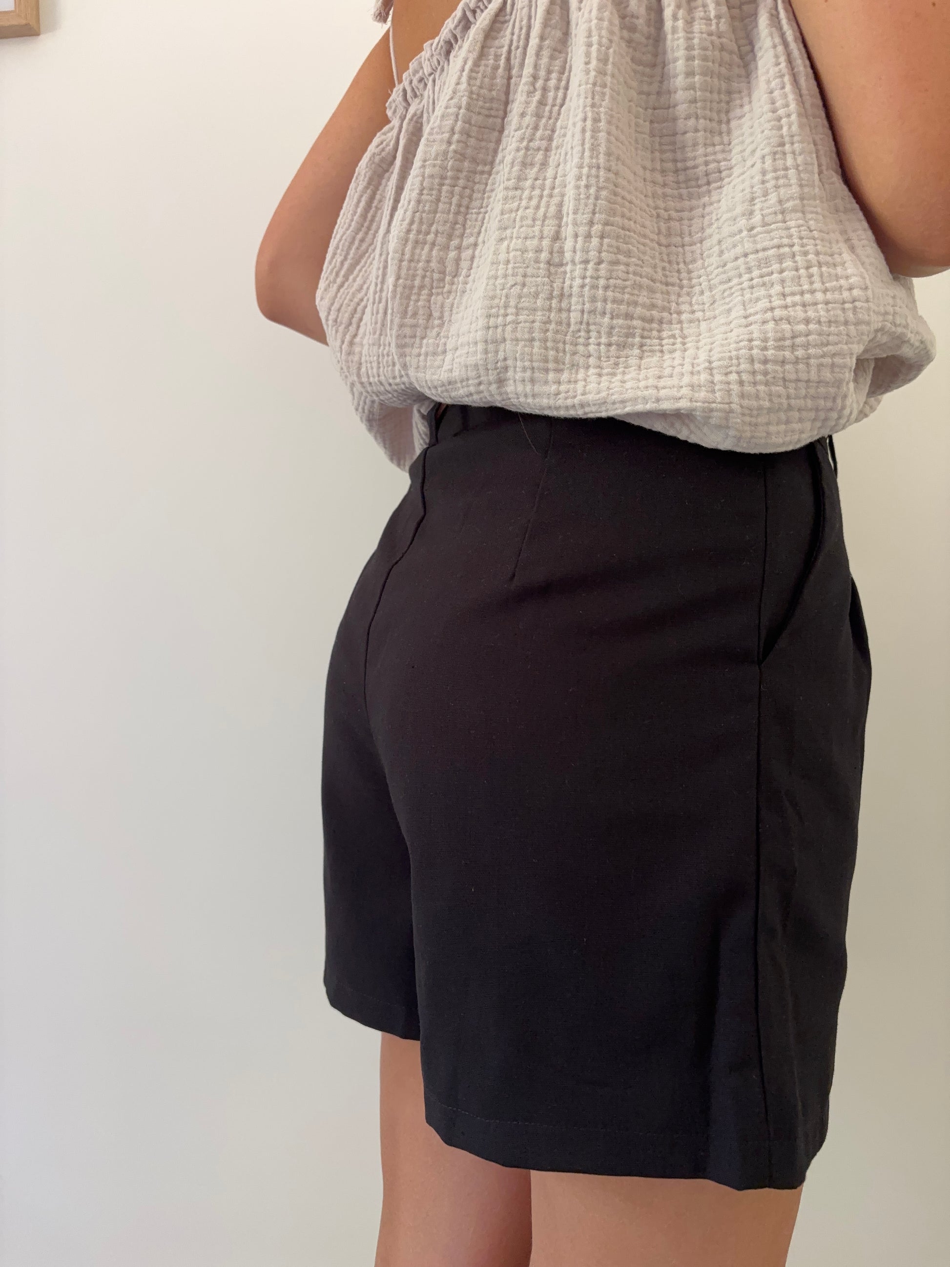 L’élégance en version short. Avec sa coupe structurée et ses pinces bien placées, ce short noir apporte une touche chic à n’importe quel look. Taille haute et légèrement ample, il flatte la silhouette tout en restant ultra confortable.