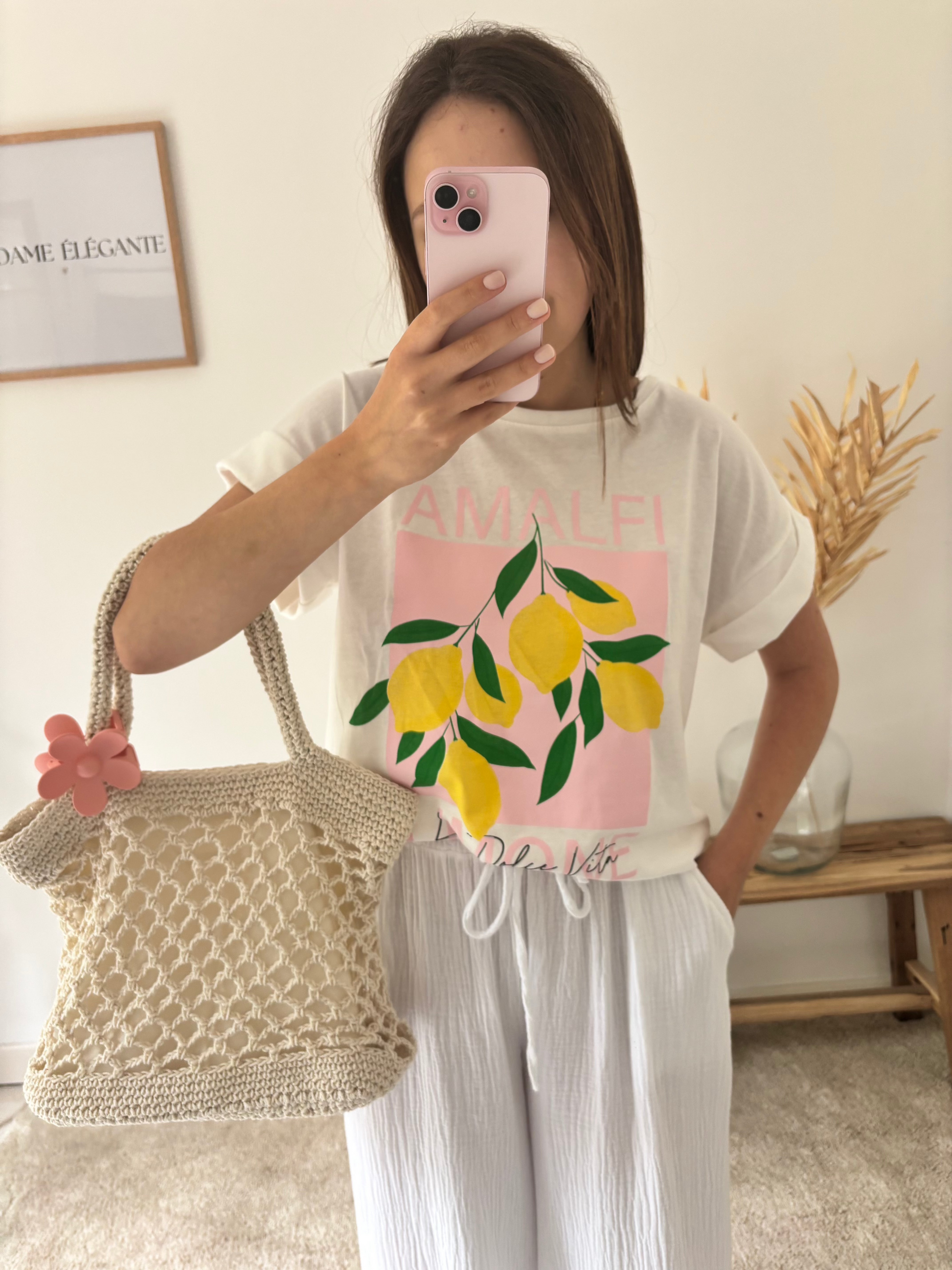Avec son imprimé citron plein de pep’s, ce t-shirt met de la bonne humeur dans vos tenues. Léger, fun et facile à porter, il apporte une touche fruitée et ensoleillée à vos journées. Parfait pour celles qui aiment mixer style et bonne énergie.